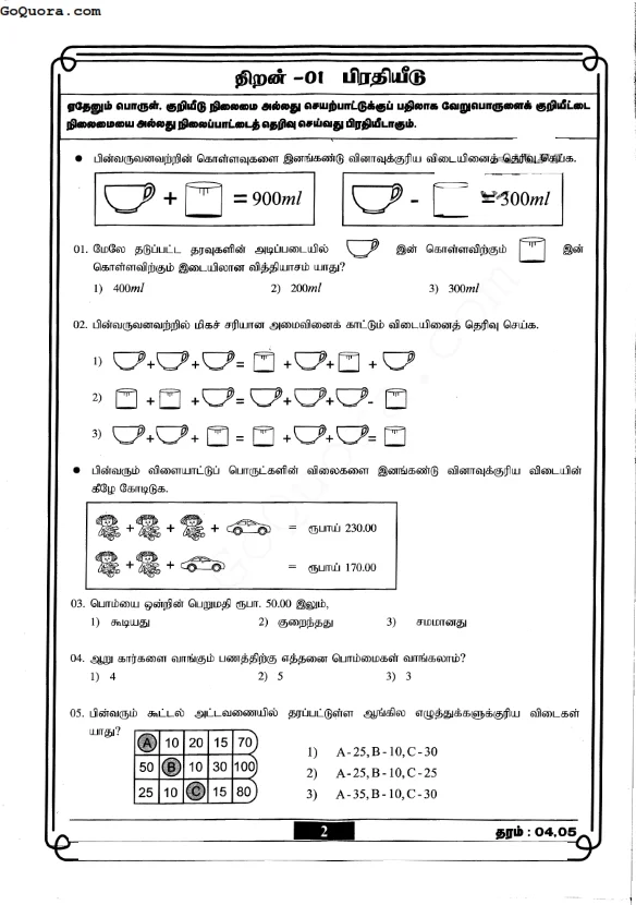 - IQ Questions – Grade 4 & 5 (தரம் 4,5 நுண்ணறிவு வினாத்தொகுப்பு)