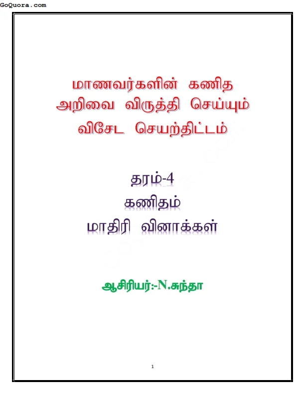 இப்பதிவில் தரம் 4 மாணவர்களுக்கான 450 கணித வினாக்கள் (450 Maths questions for grade 4) Pdf வடிவில் பகிரப்பட்டுள்ளன. மேலும் விடுமுறை காலப்பகுதியில் மாணவர்களுக்கு சிறந்த மீட்டல் பயிற்சியாக இது அமையும்.